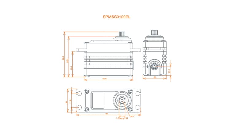 - Con un nuevo diseño de carcasa que mejora el soporte de los pasadores que sujetan los engranajes y una nueva placa superior de aluminio con un alojamiento de rodamientos rediseñado, los S9110 y S9120 han sido diseñados para una mayor durabilidad. El nuevo diseño de motor sin escobillas proporciona más potencia que cualquier servo Spektrum anterior: el S9120 de alto par motor alcanza 1454 oz-in a 8,4 V, mientras que el S9110 de alta velocidad alcanza 1224 oz-in. El S9110 mantiene una velocidad similar de 0,14 s/60⁰ a 8,4 V, ¡con casi un 60 % más de par motor que la versión anterior! Las mejoras adicionales incluyen un nuevo y elegante diseño en negro discreto y un nuevo conector desmontable con cable de calibre 18 AWG más grueso. Además, ambos ya han demostrado su eficacia en competición, ya que el S9110BL y el S9120 ganaron la categoría 1/5 del Campeonato Mundial de Buggy de 2020 en So Cal Nitro.