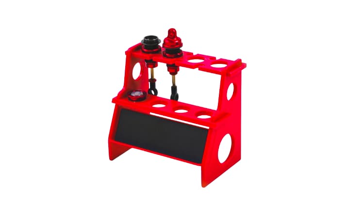 • Este Soporte de amortiguador Robitronic sirve principalmente para llenar hasta cuatro amortiguadores, ideal para modelos a escala 1/10.
