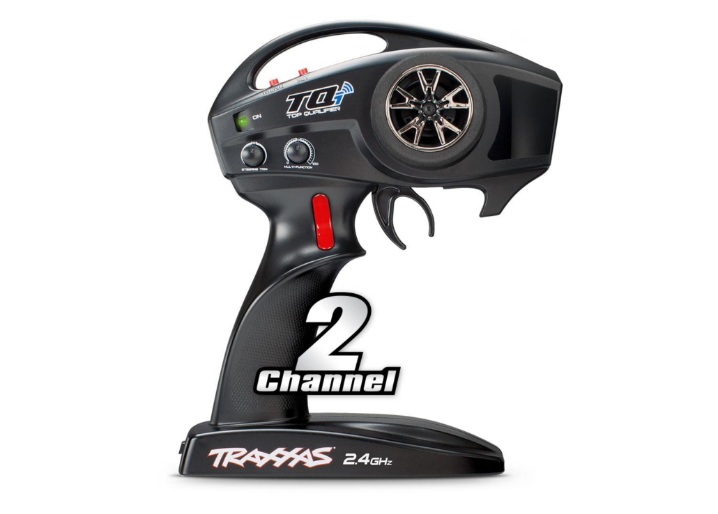 • El transmisor TQi™ de 2 canales combina una completa gama de funciones de ajuste con la comodidad de largo alcance de la tecnología de 2.4 GHz. El reconocimiento automático de modelos recupera instantáneamente tu configuración para hasta 30 modelos compatibles con Traxxas Link. El diseño ergonómico del TQi proporciona comodidad de conducción durante todo el día, con una antena interna resistente a los daños.