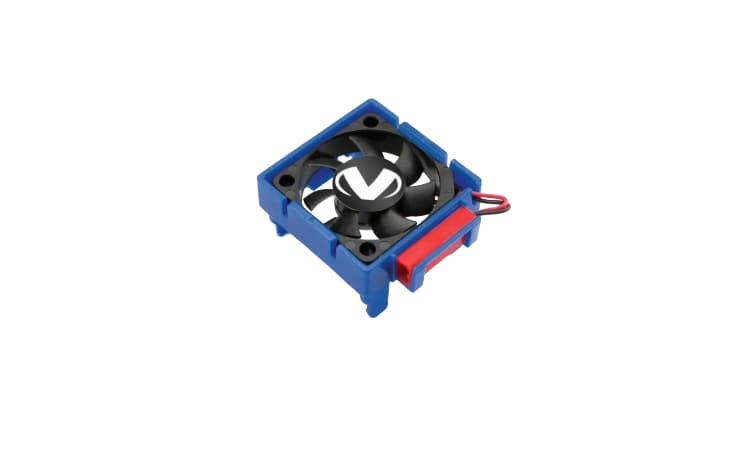 • El ventilador de refrigeración Velineon® VXL-3s reduce la temperatura del ESC durante el funcionamiento prolongado para maximizar el flujo de potencia. Se fija firmemente al disipador del VXL-3s para una fácil instalación. Los cables se enrutan de forma ordenada gracias al clip de conexión integrado. Simplemente conecte el ventilador de refrigeración al conector de alimentación Velineon VXL-3s y fíjelo al disipador para una mayor refrigeración.